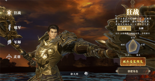 游戏提供四大特色职业:破军(近战爆发)、狂战(高防坦克)、灵羽(远程输出)与军师(辅助控制),每种职业拥有独特技能体系,适配不同战斗风格。新手建议根据操作偏好选择职业,快速上手核心玩法。