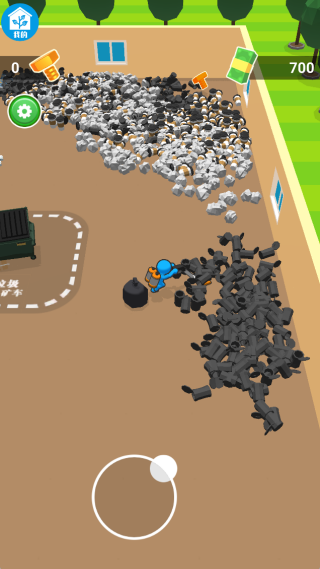 玩家需操控角色在庄园地图中自由移动,自动收集散落的各类垃圾。收集到的垃圾会被送入矿车并自动出售,但需前往庄园门口手动领取收益。金币可用于解锁新区域、完成主线任务,并持续投资于更高效的清洁设备,最终打造属于你的理想绿色庄园。