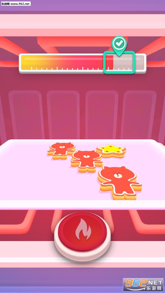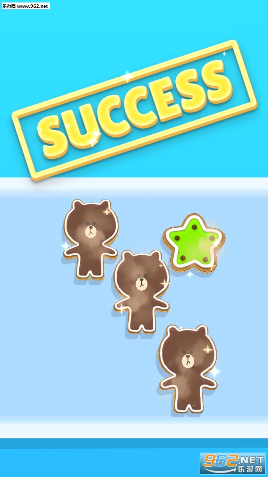 超可爱的一款游戏,游戏有难度的地方其实就在于你要在有限的空间上印出足够的饼干花纹,闯关成功或者失败的那只小熊和兔子之间的互动超可爱,大家一定要仔细看看!
