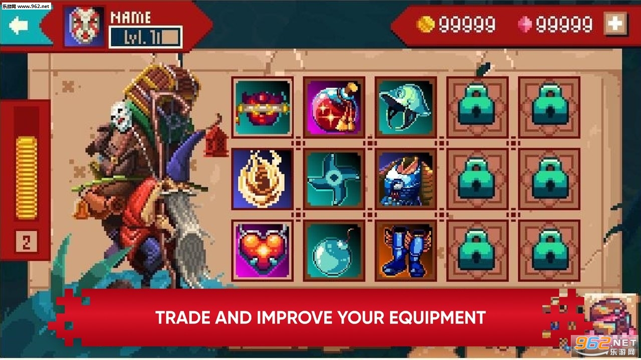 以像素卡通风格来设计,战斗风格上以武士格斗为主,也让玩家有着一定的动作感体验,传承武士道精神打败每一个对手。