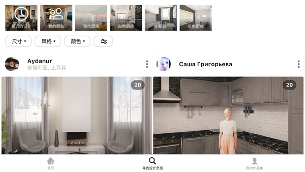 2、点击寻找灵感”选项,可以浏览其他用户的作品;