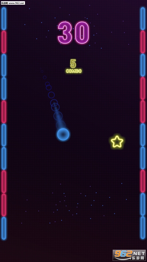 《弹跳霓虹球安卓游戏》是以经典的霓虹色彩打造的休闲类游戏,玩法上还是比较简单的,按照规则将小球弹向对应颜色的墙壁即可保证小球生存下来,反之则是游戏失败的结局了,游戏玩着很轻松也很有挑战性的。