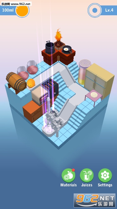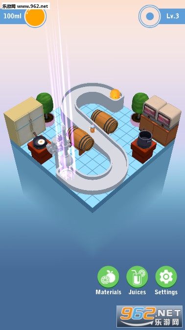 《行走的果汁手游》是一款很休闲解压闯关小游戏,游戏的画面很精致,果汁的配色清爽活力,很有夏天的感觉,想要得到果汁,就先要将水果放入到榨汁机里面,旋转游戏画面,让水果沿着轨道滚入榨汁机里面,然后你就可以获得冰冰凉凉的果汁了。