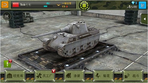 备战室包含四大功能模块:坦克库(选择出战载具)、兵工厂(升级核心部件)、涂装(提升属性+外观)、贴花(附加增益效果)。其中涂装与贴花需钻石购买,且具有约48小时时效,建议在关键对局前使用。