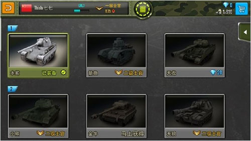 初入战场,合理规划成长路径是制胜关键。游戏初期默认坦克水蛇”仅作过渡,建议迅速积累20,000军费,优先购入高机动性、高射速的箭鱼”坦克——它不仅能高效拾取战场资源,还可长期使用至中期。切勿急于用钻石购买天龙”,性价比远低于箭鱼。