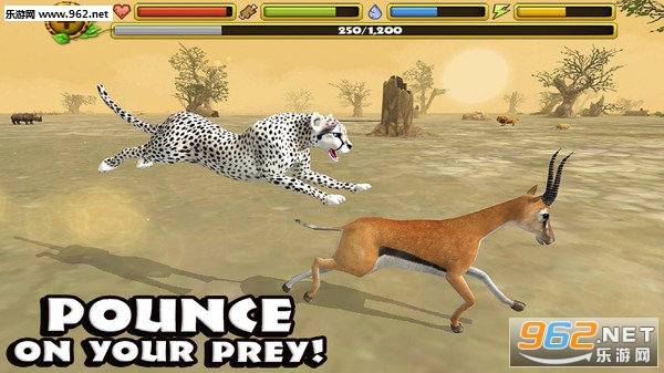 在这款游戏里玩家将扮演非洲草原里的动物,一共有十种动物供你选择,即可以选择猎豹鳄鱼疯狂猎杀(小心被反杀),也可以选择大象羚羊过过食草动物的悠哉生活(注意躲开食肉动物)。游戏中还有个老虎作为boss可供你挑战(非洲应该没有老虎吧)。你还可以组成自己的动物家庭,养育自己的孩子。