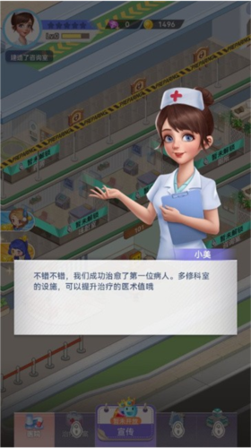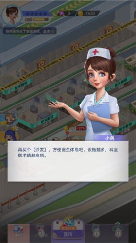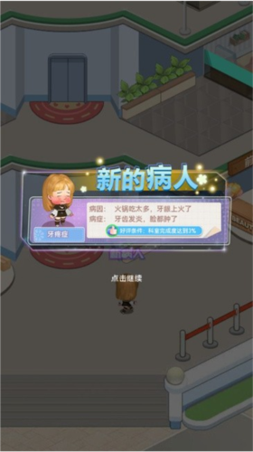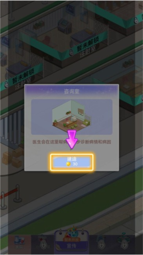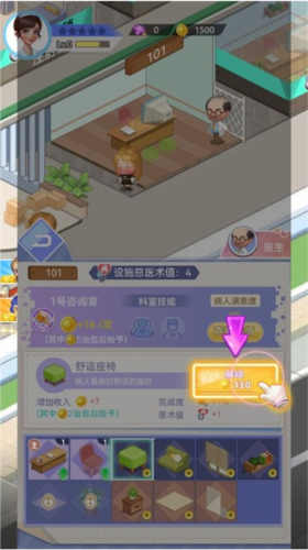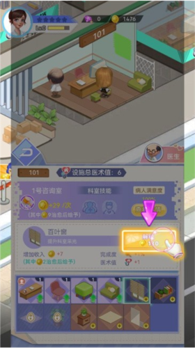 游戏初期,优先在前台登记病人以获取初始收益;随后建造咨询室,用金币解锁基础科室。每成功治愈一位病人,都将提升医院的医术值”,进而解锁更多设施与功能。记得在商品库中购买座椅、沙发等家具——它们不仅能改善候诊环境,还能直接提高医术值,形成良性循环。