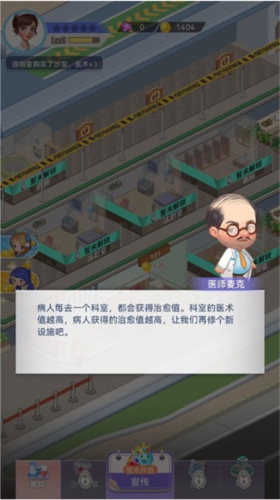 随着科室等级提升,每位就诊病人带来的治愈值”也会增加,为你积累更多资源用于扩建与升级。点击任意科室,还可自主解锁专属设备或装饰,进一步优化诊疗效率与医院形象。