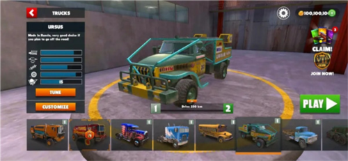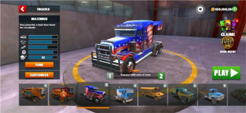 MUDBEE:外形酷似怪兽卡车,实则高效运输能手(引擎40/耐用性20/载货量15)。