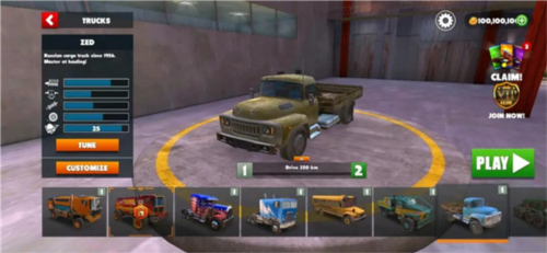CARRY:基础皮卡,性能平庸(引擎30/耐用性10/悬挂28/抓地力41/载货量10),建议尽早升级。