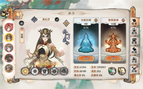 进阶技巧:传功继承:在【传功阁】可将一名弟子的修为与炼体成果转移给另一名弟子,实现资源优化配置,避免浪费。