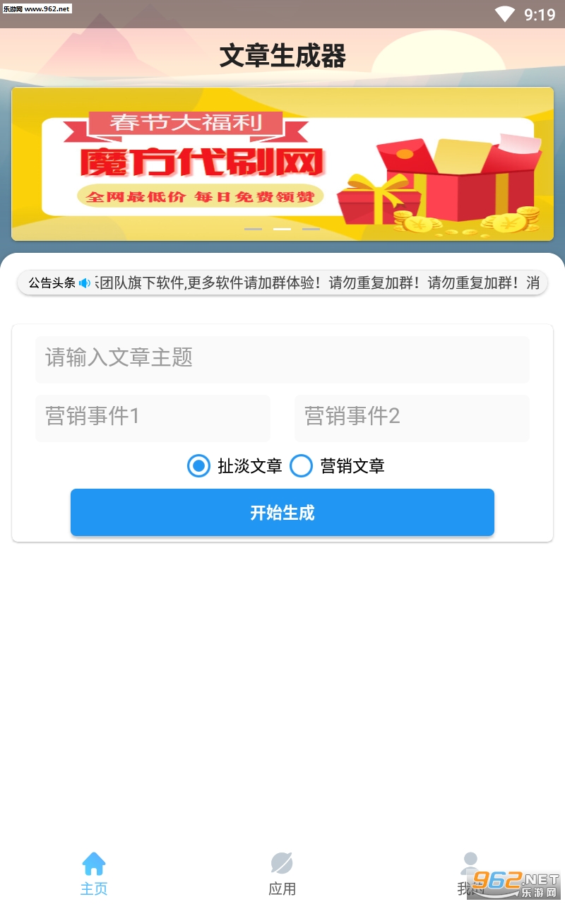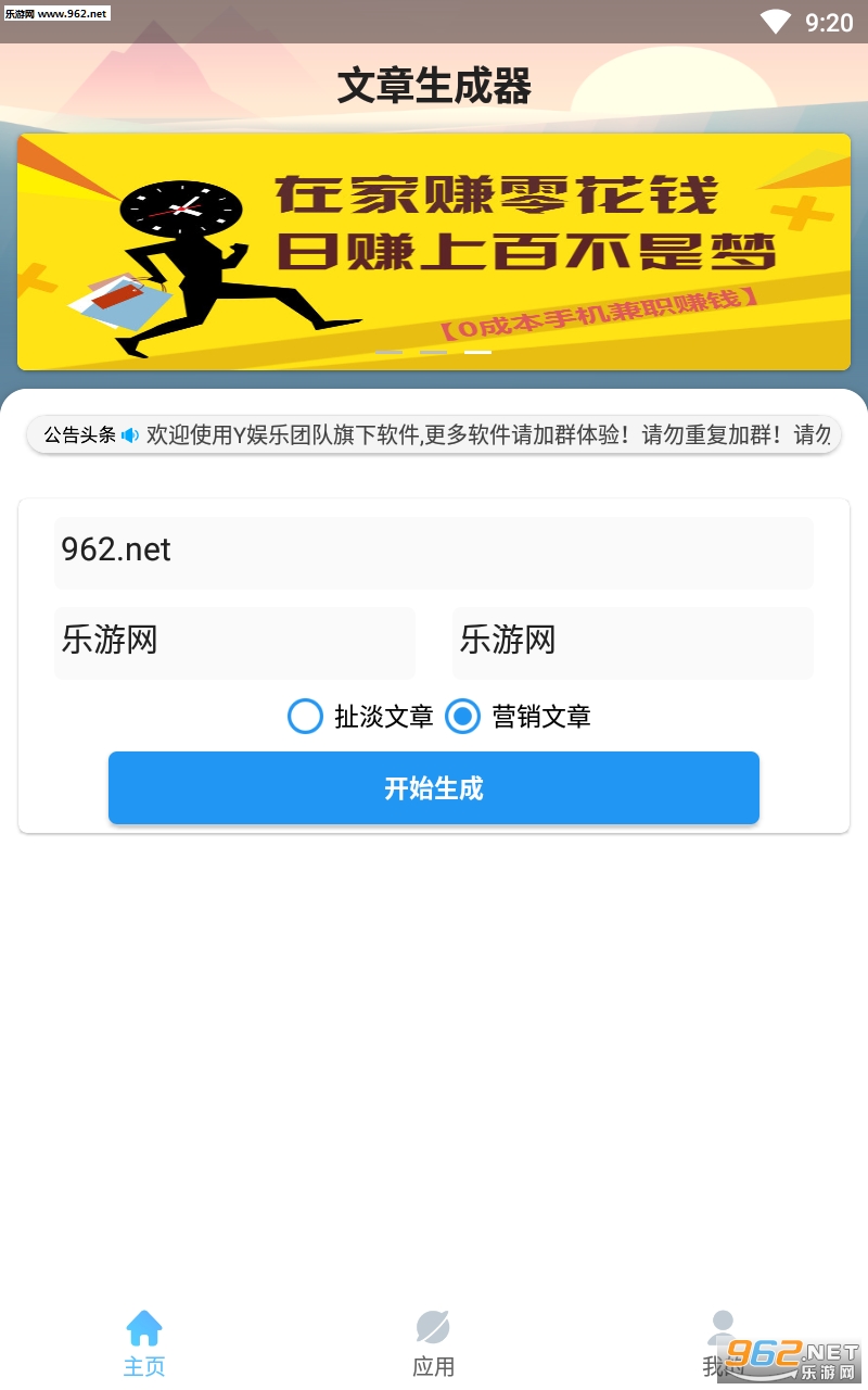 一款能够通过你输入的主题和附加内容一键生成扯淡文章和营销号文章的APP,软件集成了狗屁不通文章和各大营销号常见的套路文章,操作简单内容有趣,非常适合发说说、朋友圈。