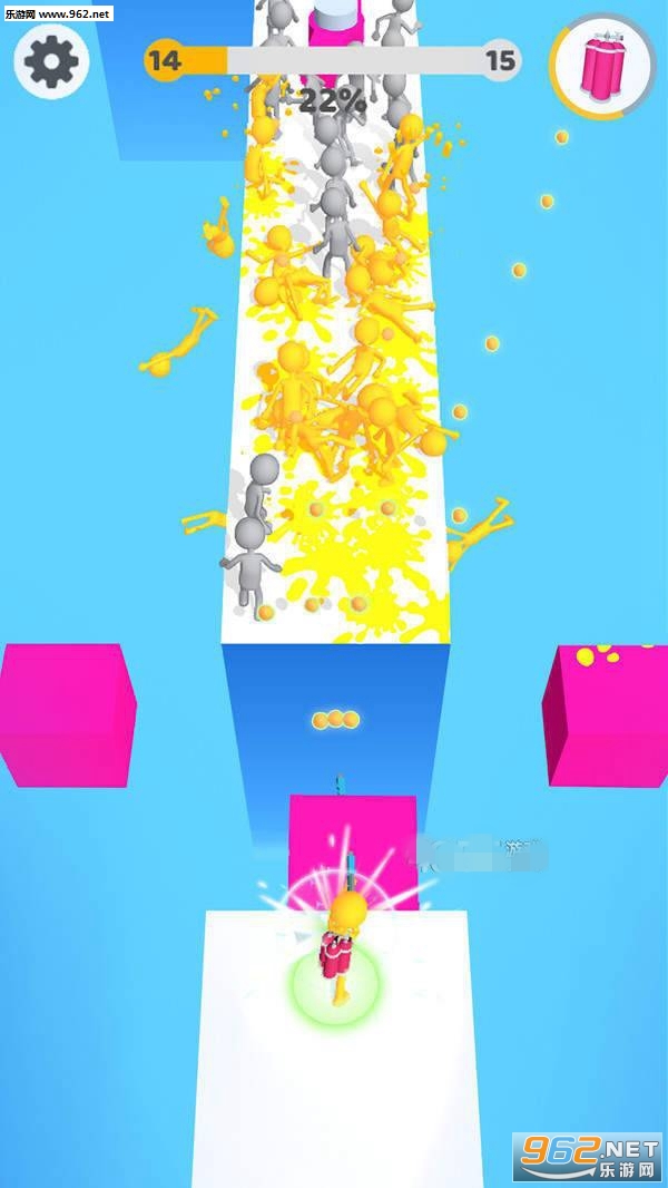 《喷射颜色安卓版》是一款橡皮人主题的色彩喷射游戏,玩家将操控自己的橡皮人在障碍重重的赛道上奔跑前进,使用武器向对手进行喷射使其加入自己的阵营,不断扩大自己的队伍并灵活应对障碍,到达终点的人数越多获得分数越高哦,超级有趣的游戏过程!