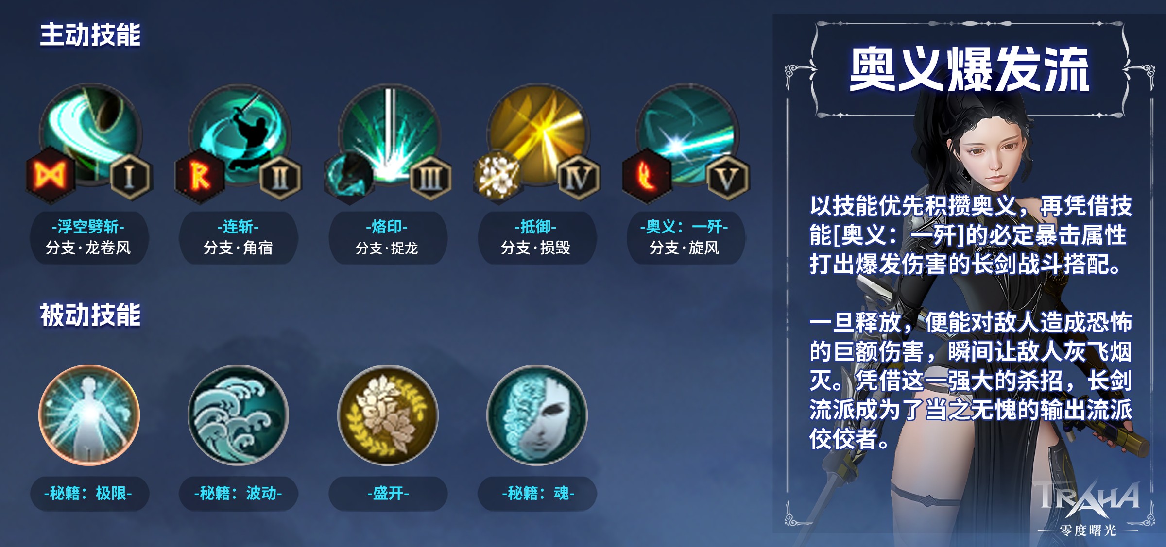 ○究级奥义: 长剑流派拥有毁天灭地般的究极奥义输出技能,一旦释放,便能对敌人造成恐怖的巨额伤害,瞬间让敌人灰飞烟灭。凭借这一强大的杀招,长剑流派成为了当之无愧的输出流派佼佼者。