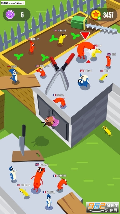 释放以冲撞敌方香肠并将其推到sausage wars io的障碍物上,如锋利的工具、厨房水槽、花园烧烤,或从柜台推下它们让其面临灭顶之灾。与那些香肠战斗并破坏它们,把它们变成碎片!