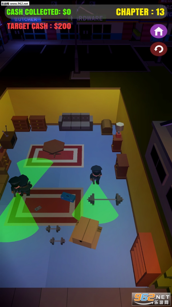 一款新的令人上瘾的3D游戏,该游戏讲述了一个强盗将房屋中的所有物品拿走,但要取回这些物品需要技巧,因为警察在房间里准备抓住您,要时刻小心,不要被抓住哦。
