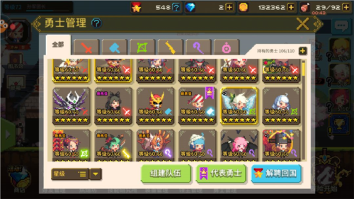 英雄获取:通过抽取、剧情关卡掉落或活动获取,分为普通、高级和传说勇士,传说英雄可从1星进化至6星。