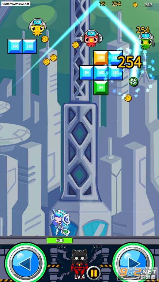 简单操作-可以只使用左右移动按钮击退强大的敌人。