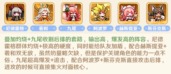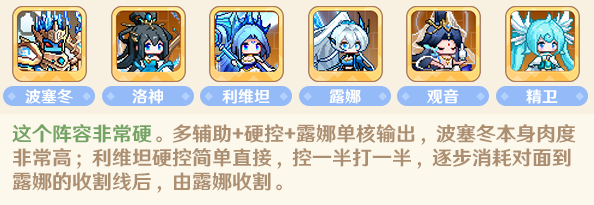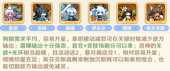 1.搭配公式:肉盾+光环+输出+输出+治疗+灵活位
