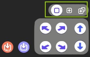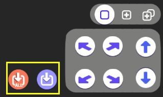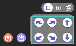 位于下图蓝色框体内的6个方向按钮能帮你改变家具所处位置哦~左侧4个多方位指向的紫色箭头按钮能使家具往箭头指向的方向平移;右侧2个上下指向的蓝色箭头按钮能使家具在不同层数间上下平移。