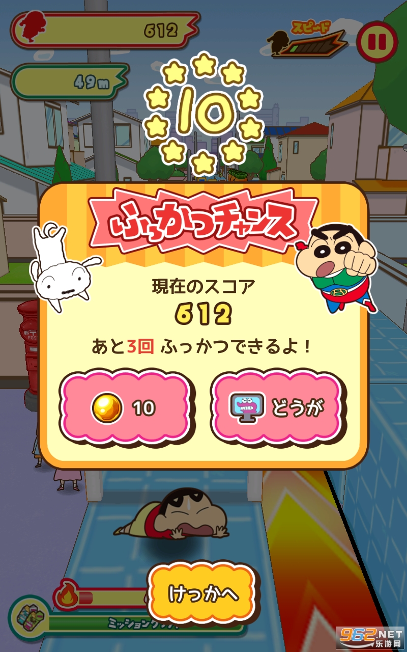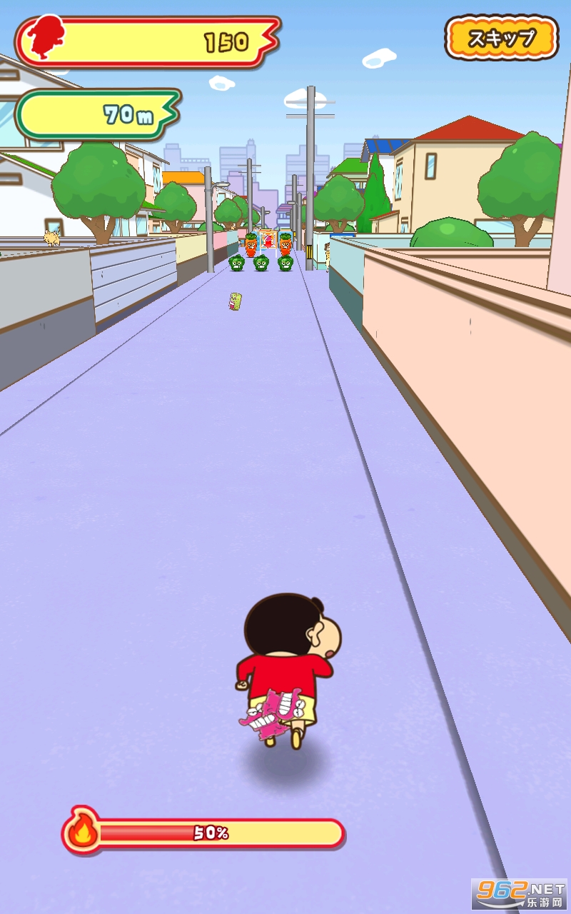 让我们在向上轻弹小新、向下轻弹、左右轻弹以移动路线的同时避开障碍物!如果你从侧面轻弹到障碍物块,你也可以做一个“臀部攻击”!