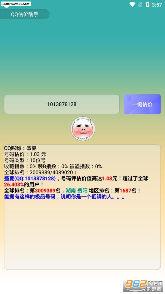 3、平台不仅可以查询价值,还可以查询你qq号在全球的排名。