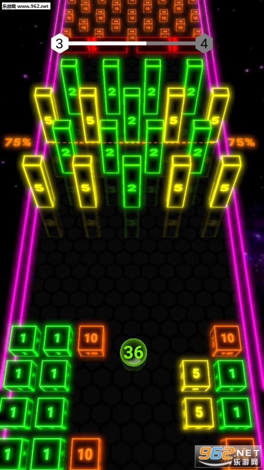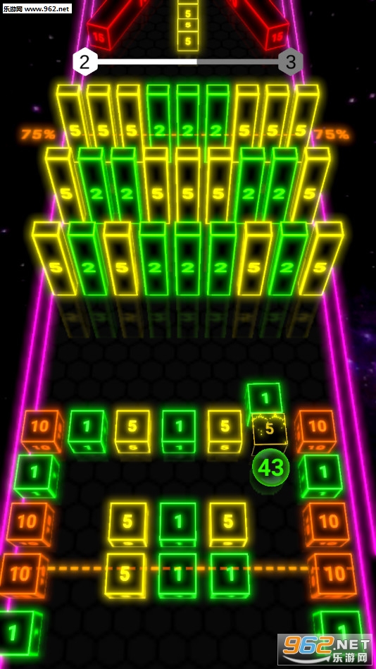 《积木霓虹灯游戏》是一款霓虹色彩的移动闯关手游,游戏中玩家将控制一个数字圆球冒险,前方有着众多的数字障碍物,注意圆球撞上障碍物之后会消减障碍物上面的数值,如果圆球的数值被消减到零挑战就结束了,玩家的任务就是让圆球在变成零之前到达终点。