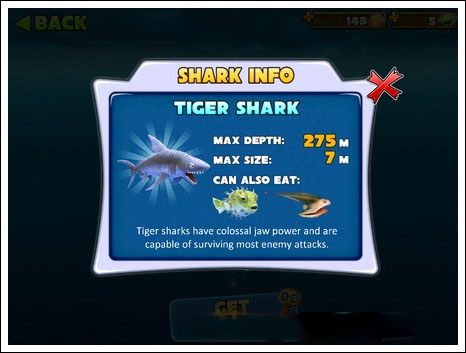 在游戏中玩家可以使用金币对鲨鱼的速度、血量、撕咬的范围进行升级,升级后可以使得鲨鱼的捕杀能力有了很大的提高。玩家在进行游戏的时候能升级就尽量的升级吧!