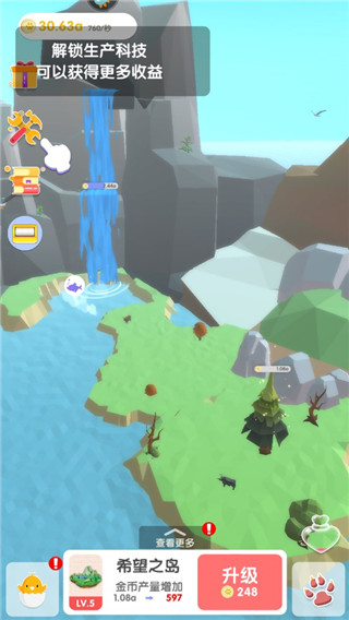 3、你可以用金币对你的岛屿进行升级,以此提高金币的产量;