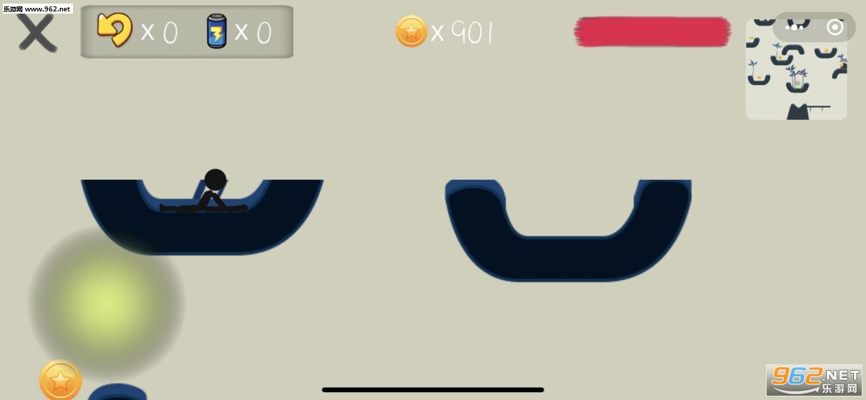1.你可以通过上方的小地图看到整个关卡里的地图大概然后让火柴人前进,向前出发收集一路上的金币;