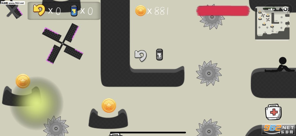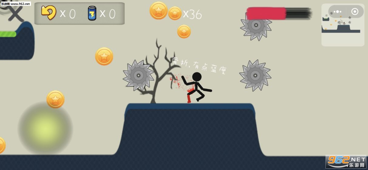 1.你可以通过上方的小地图看到整个关卡里的地图大概然后让火柴人前进,向前出发收集一路上的金币;