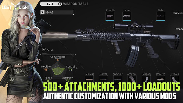 从几百种真实枪械改装方案中选择最适合的,迎接即将到来的战斗。枪械以1:1的比例还原,贴近现实枪械的物理构造和材质表现,追求最好的枪械体验。每一把枪包含十二个改装部位、上百种改装零件。