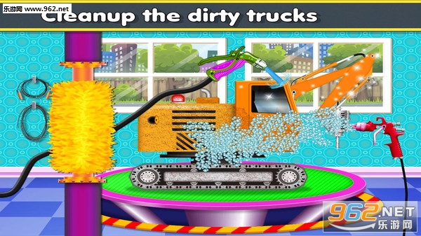 3、按照说明进行操作,并成为疯狂的汽车修理厂卡车司机,在汽车车间车库服务中清洗工程卡车车辆。