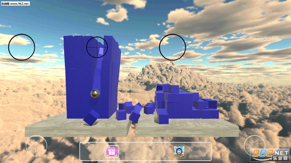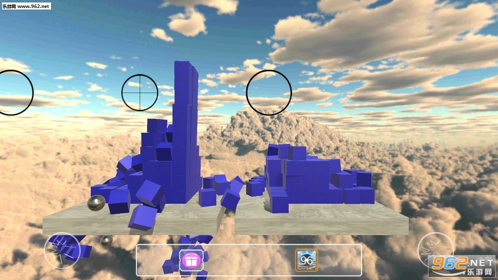 选择武器,瞄准各种建筑,发射武器摧毁建筑,击落所有方块体通关。
