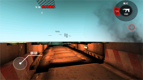 作为一款FPS的射击游戏,死亡扳机在移动移动上还是做得非常准确的,左下角的虚拟按钮长按是人物移动。屏幕的整个右半边是第一视角移动,3D眩晕的同学要把控好哦,否则就转到天上去。