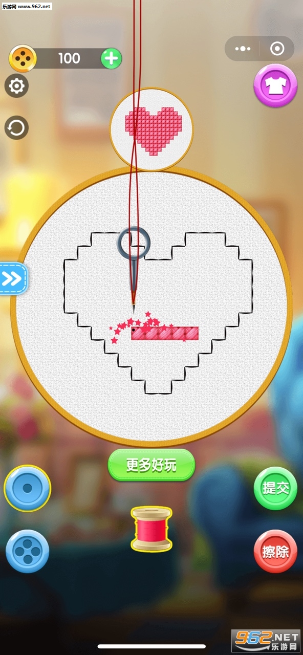 1、趣味好玩的刺绣游戏,每关都会给出不同的刺绣图形,从单一颜色到多种颜色等你完成;