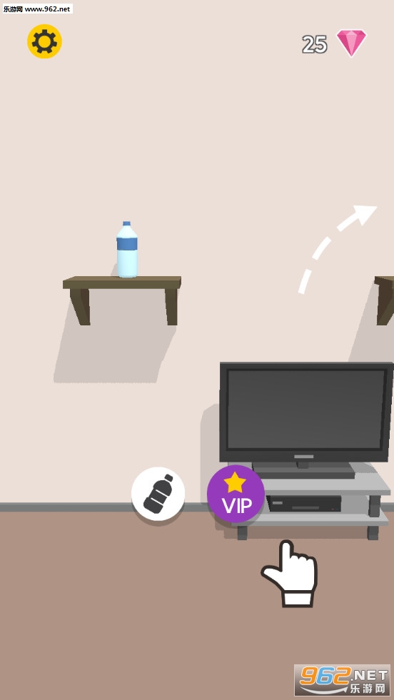 1、竖屏界面手指轻松点击,让瓶子飞起来,瓶子的落脚地被的玩家影响。