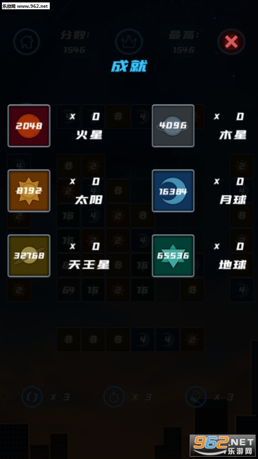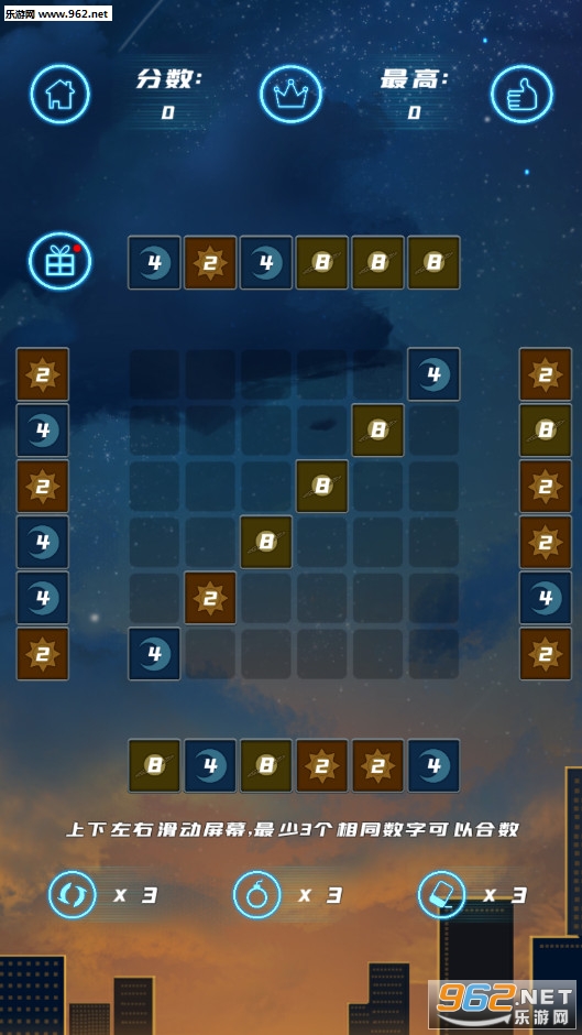 趣味的数字合成类2048游戏,加入了星空的一些元素,玩家获得的得分越高可以解锁各种不同的成就,比如地球、火星、木星、太阳等,喜欢的朋友可以下载试试。