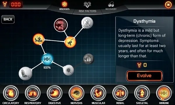 生化公司中文版是一款由DryGin Studios开发的策略类手游,以医学主题和科幻设定为核心,玩家需通过操控病毒入侵人体系统,引发疾病并最终导致目标死亡。游戏将人体的呼吸系统、神经系统、肌肉功能、肾脏功能、骨骼系统、消化系统以及循环系统等以透视图形式呈现,玩家需收集病毒元素并集中作用于特定系统,触发疾病进程。