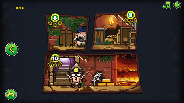 3、再次长胖的神偷鲍勃能否顺利的完成关卡挑战呢,解开密室的谜题享受每一次的闯关历险,环环相扣的谜题场景就等你来。