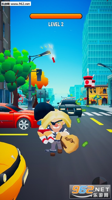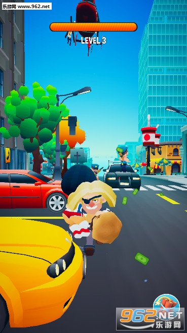 《强盗快跑安卓版》是一款强盗题材的跑酷闯关游戏,游戏中玩家的身份是一名劫匪,你要扛着人质和钱袋奔跑,逃脱警察们的追捕,警察们有的会开着警车,有的会乘坐直升机,向你扔炸弹,你要灵活的走位躲避炸弹和警察,你也可以向他们仍炸弹,减少他们的数量,成功逃脱。