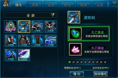 装备炼器建议:强化装备时,+4前可使用普通材料,+4后务必改用五行精金”或太乙精金”,避免失败降级,保障资源高效利用。