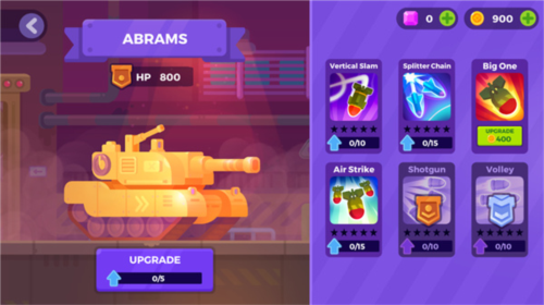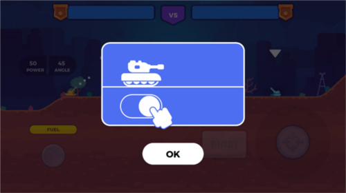 进入游戏后,首先选择对战模式,随后点击UPGRADE”进入装备界面。在这里,你可以使用无限金币自由购买各类导弹与升级部件。返回主界面点击PLAY”即可开始战斗。战斗中,通过左下角按键控制坦克移动,右下角滑动调整炮口方向,点击FIRE”发射炮弹。发射前还可切换不同弹药类型,以应对不同敌人。击败对手后,系统将根据表现发放奖励,助你持续强化战力。