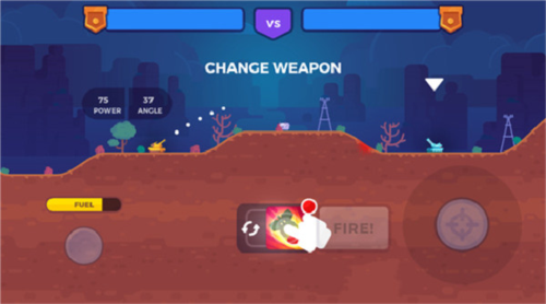 采用清新简洁的卡通美术风格,画面干净明快,视觉体验舒适不疲劳。操作设计直观易懂:左下角虚拟摇杆控制移动,右下角滑动调节炮口角度,点击FIRE”即可开火。即使是初次接触此类游戏的新手,也能在几分钟内掌握核心玩法,迅速投入紧张刺激的对战之中。