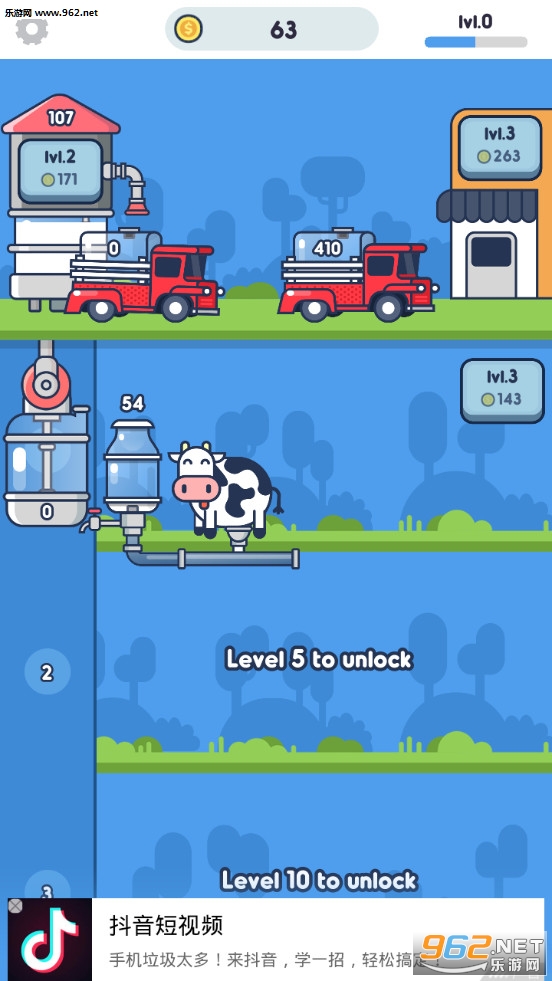 收集元素非常丰富的一款模拟经营游戏,玩家在游戏中可以解锁各种趣味性十足的皮肤。照顾好你的奶牛,不断的扩建规模,赚到更多的钱吧!