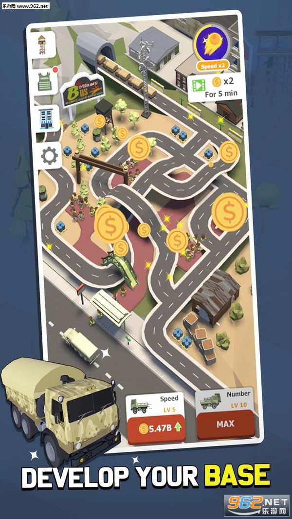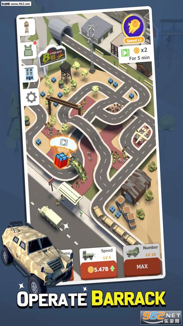 以军事化风格为基础设计的放置经营类游戏,打造你的军事基地,生产更多的军事化武器和设备来提升你的军队能力;