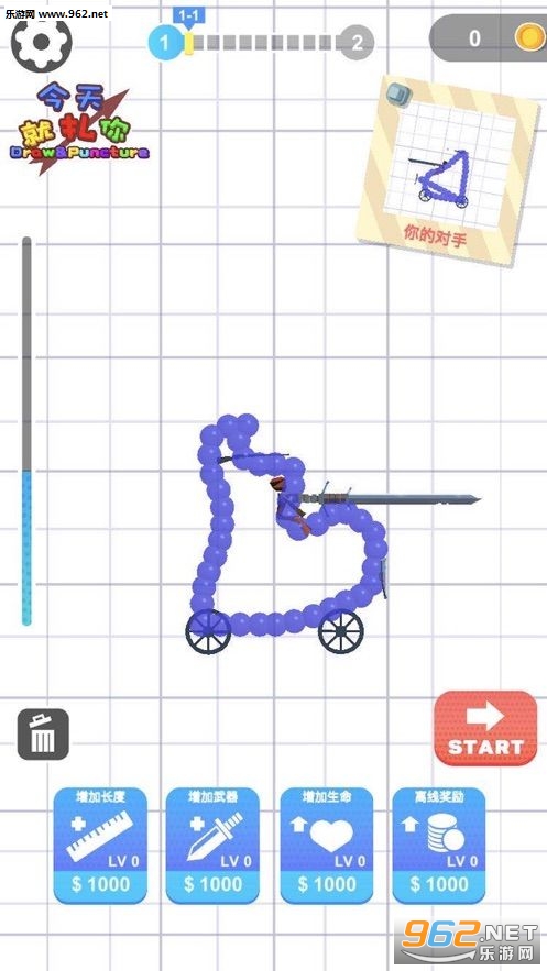 1、游戏的的画面非常的简洁,在闯关的过程中,你可以利用各种画笔道具来制作自己的战车。