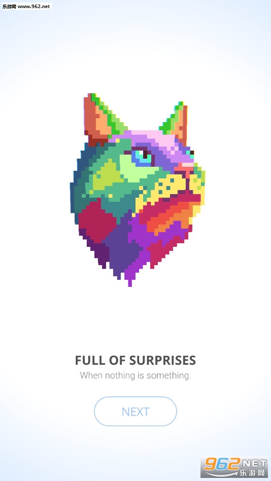 《像素艺术品游戏》是一款采用像素风格的趣味旋转拼接休闲手游,游戏中有着众多图案可以挑战,玩家可以上下左右向着各个不同的方向移动这些散乱的像素方块,当移动到某一个点的时候可以看到这些像素方块组成了一个图案,比如一朵花、一只动物等。