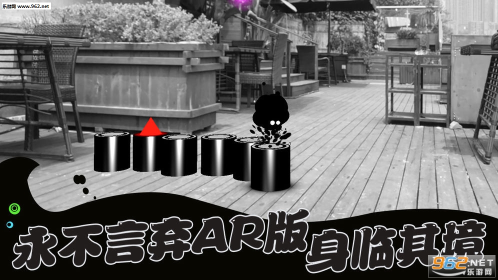 永不言弃AR,是该系列游戏的首次尝试,增强现实技术让小墨点来到三次元的世界!点击屏幕让角色跳跃起来,帮助小墨点越过一层又一层障碍,看你能否做到永不言弃!