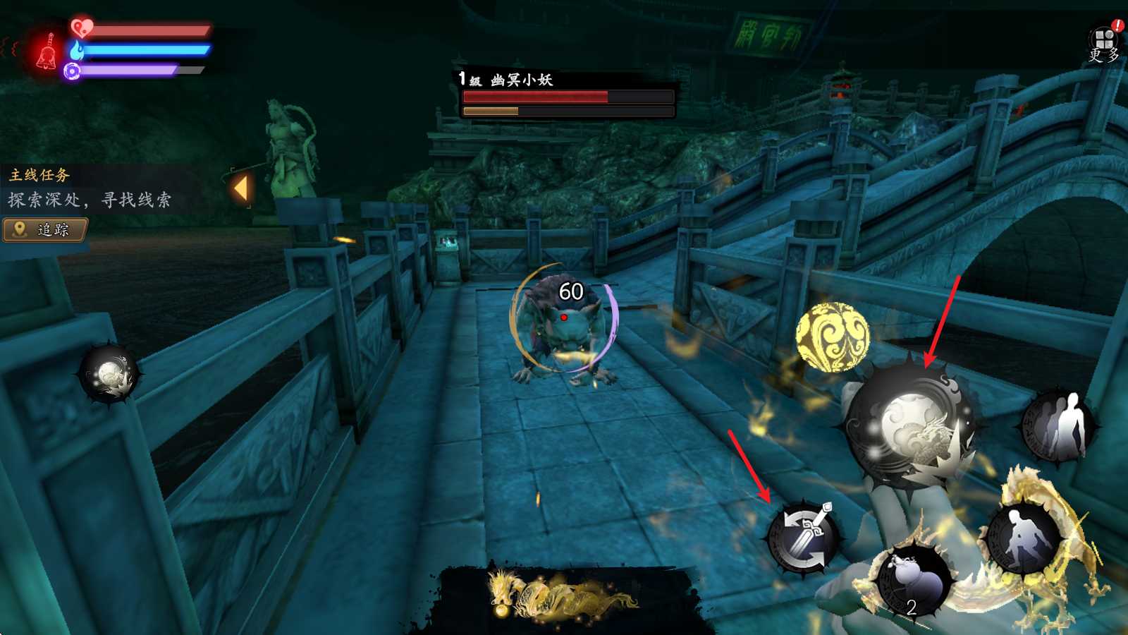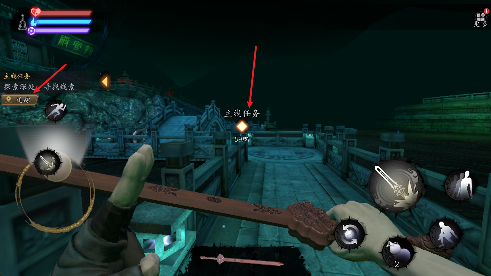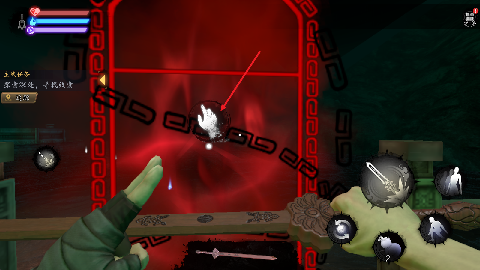 4、除了战斗外,我们还需要探索场景,寻找任务线索,靠近可以互动的物品后会出现对应按钮。